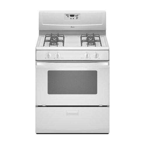 Amana AGR4433XDW 30" Freestanding Gas Range with 4.4 cu. ft. Oven Capacity, Manual Clean, 4 Sealed Burners, Easy Touch Electronic Controls, Spillsaver Cooktop Design and Temp Assure Electronic Temperature Management System: White